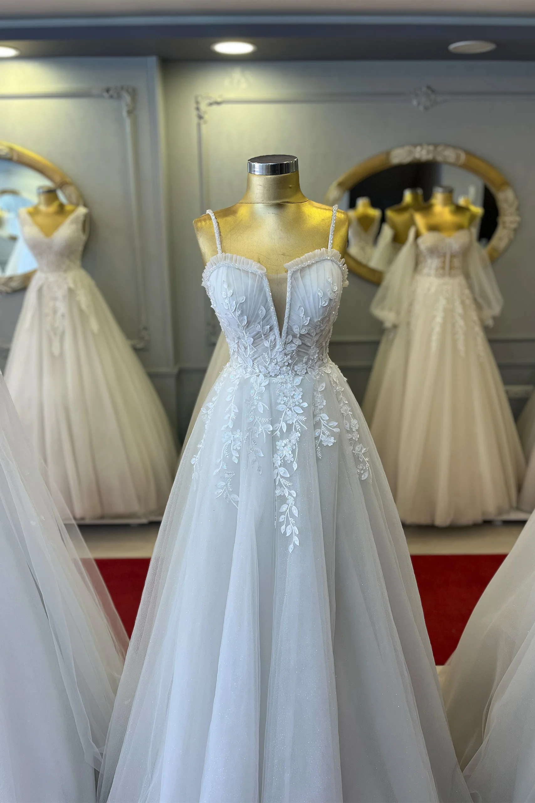 Beğendiğiniz gelinliği ön prova randevusu ile mağazamızda deneyebilirsiniz.