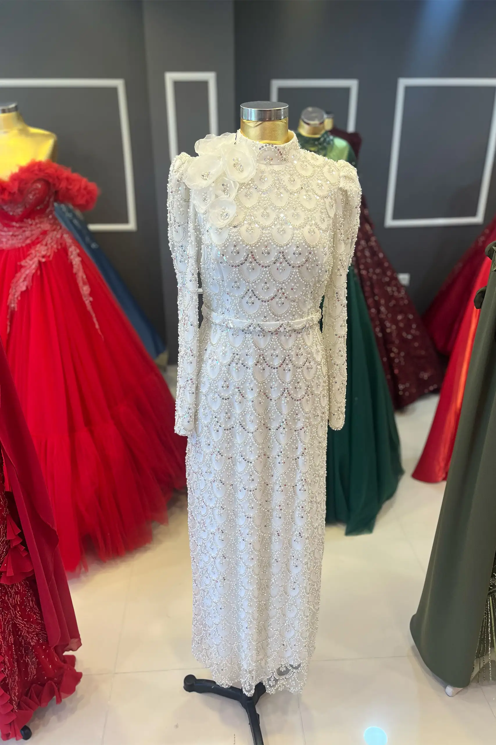 Uzun Kollu Abiye Tesettür Nişanlık